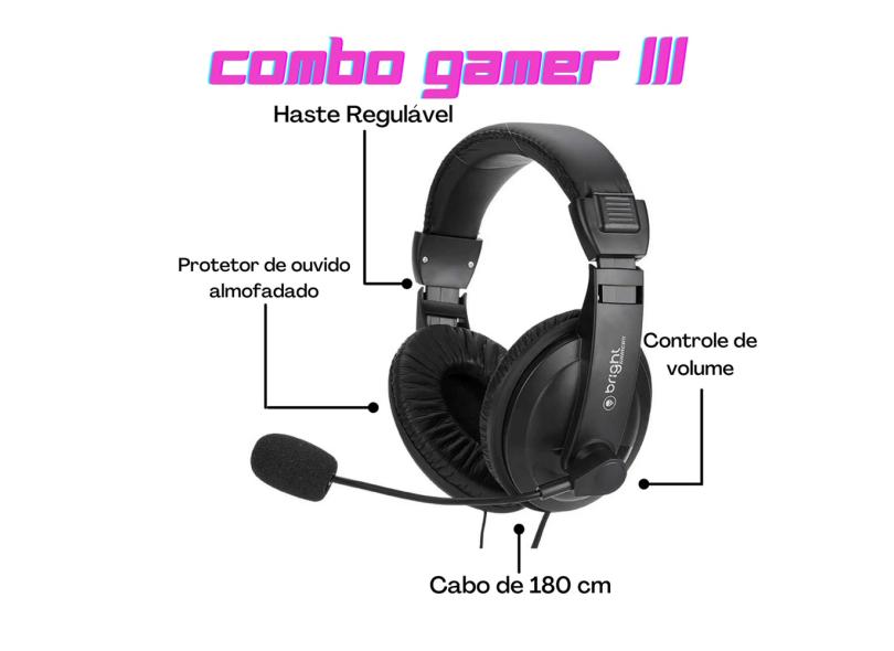 Combo Gamer Completo 3 Em 1 Bright rgb Teclado Mouse Headset 0543