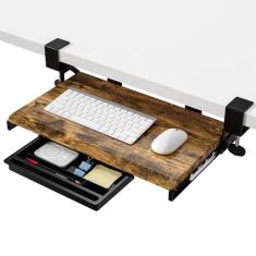 ETHU Bandeja de teclado sob a mesa, 50 cm x 31 cm tamanho pequeno C braçadeira gaveta de teclado sob mesa, suporte deslizante para teclado de computador, bandeja de teclado ergonômica para casa,