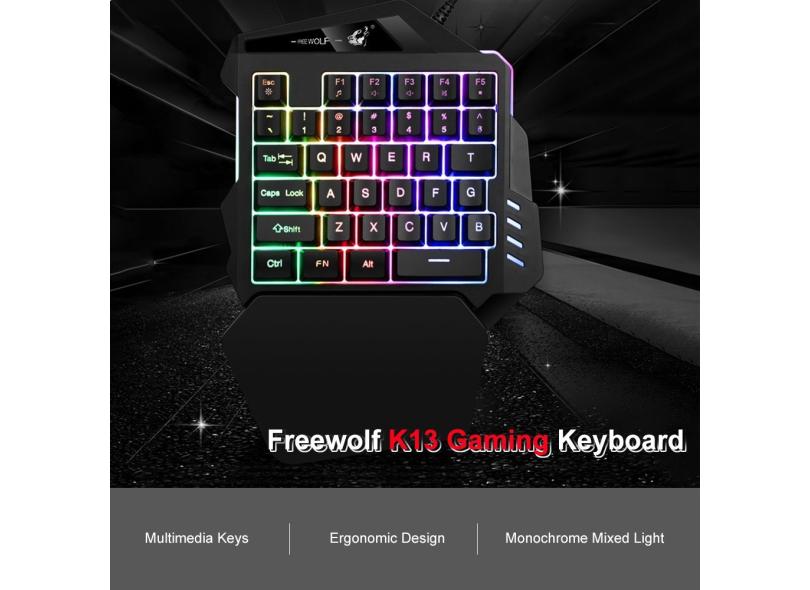 Freewolf K13 Gaming Keyboard Uma Mão Wired Keyboard Um jogo única mão do teclado para pugb Móvel jogo da mão mecânica Sentindo Design Ergonômico
