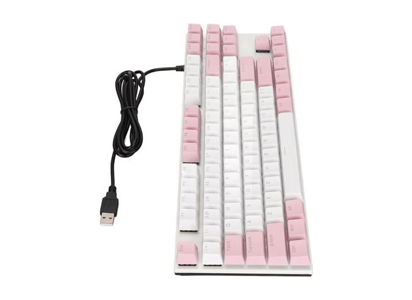 Teclado com fio, 87 teclas com design de luz de fundo Teclado para jogos fof Typists fof Home /605 (Size : Pink White)