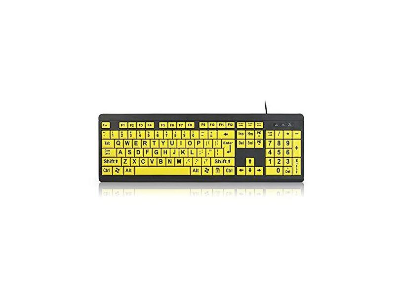 Teclado de computador com impressão grande USB com fio para usuários de baixa visão e alto contraste 104 letras de teclas para homens idosos