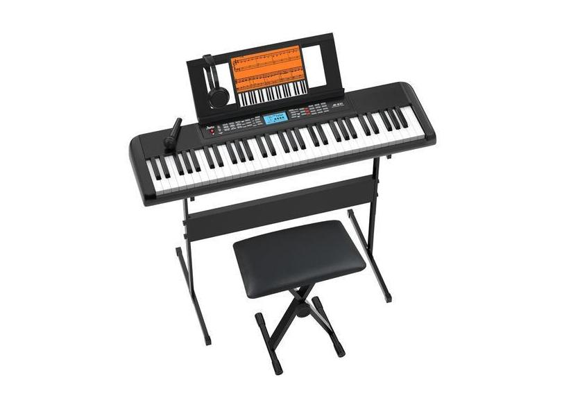Teclado de piano portátil JIKADA de 61 teclas com LCD 300 timbres