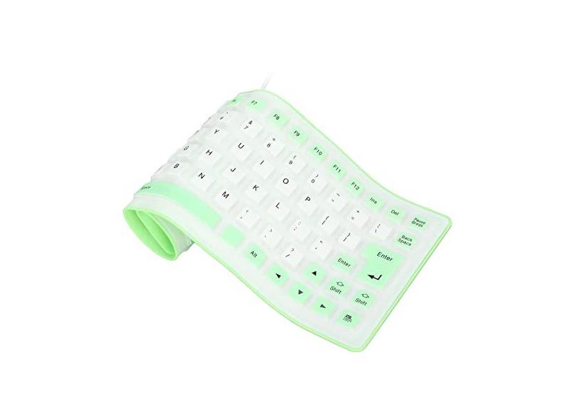O menor preço encontrado no Brasil para Teclado de Silicone Design Totalmente Selado Teclado de Borracha Portátil Leve Teclado Oll Up Silencioso Macio Confortável Teclado de Silicone Com Fio USB para PC (Verde) atualmente é R$ 219,65.