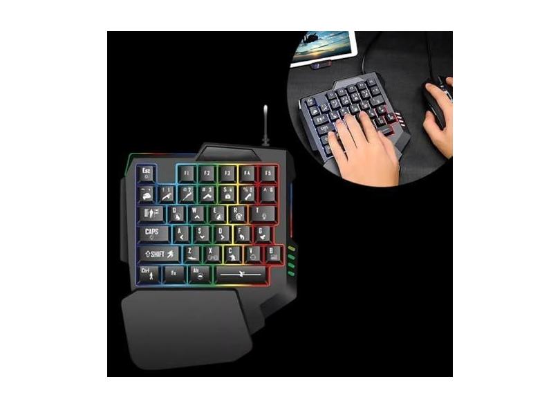 O menor preço encontrado no Brasil para Teclado Gamer Rgb Uma Mão Semi Mecânico Jogos USB atualmente é R$ 89,70.