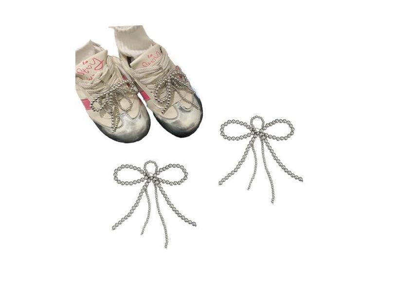 2 peças de pingentes de decoração de sapatos com laço de pérolas, para tênis, sapatos sociais, fivela elegante, corrente de contas de pérola para mulheres, acessórios de sapato para presente de