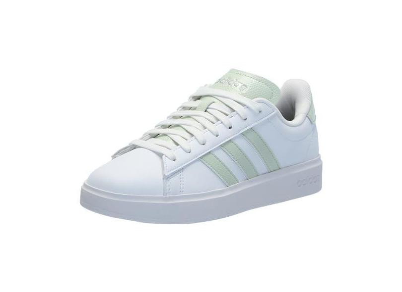 adidas Tênis feminino Grand Court 2.0, Branco/linho verde/prata fosco, 40