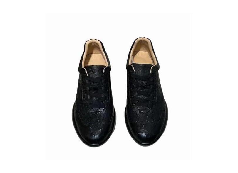 All-Match Authentic Ostrich Skin Unissex Feminino Masculino Clássico Preto Couro Exótico Feminino Masculino Casual Cadarço Sapatilha, Preto, 41