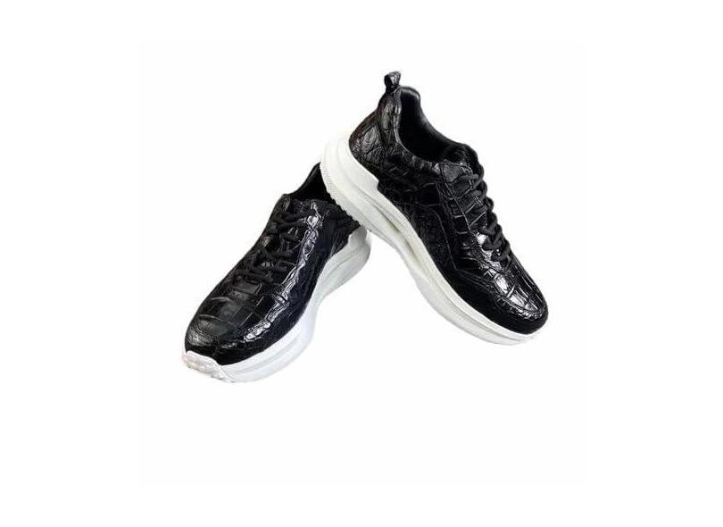 All-Match Tênis masculino preto e branco autêntico pele de crocodilo genuíno couro de jacaré exótico, sola macia com cadarço, Preto, 41