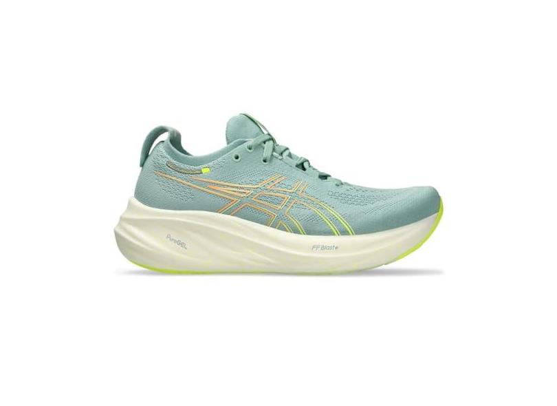 ASICS Tênis de corrida feminino Gel-Nimbus 26, Celadon claro/amarelo seguro, 42
