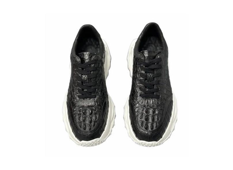 Authentic Exotic Crocodile Skin Brown Color Tênis masculino casual genuíno couro jacaré genuíno masculino macio cadarço sapatilha de caminhada, Preto, 38