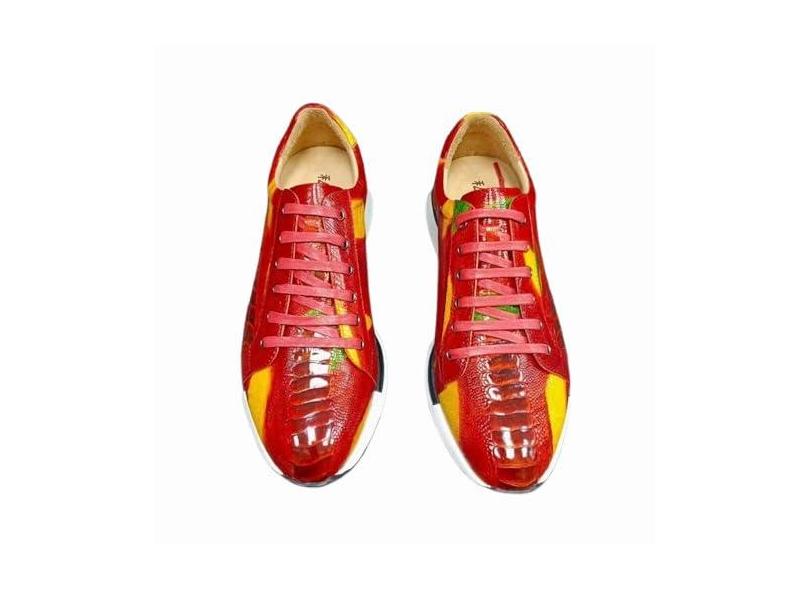 Authentic Real True Ostrich Foot Skin Tênis masculino vermelho colorido com cadarço couro exótico genuíno sapatos de caminhada para festa, Multi, 38