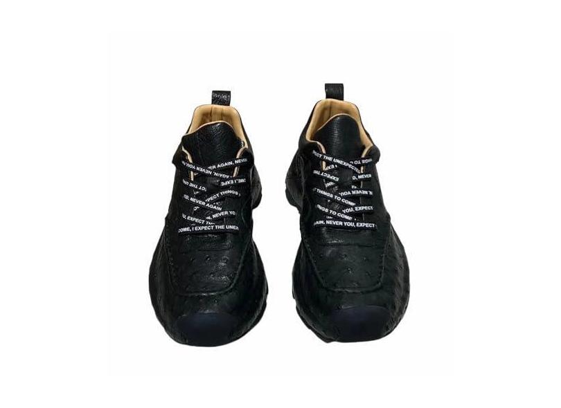 Authentic Real True Ostrich Skin Fashion Preto Sólido Tênis Masculino com Cadarço Couro Exótico Genuíno Masculino Casual Macio Sapatos Rasos, Preto, 39