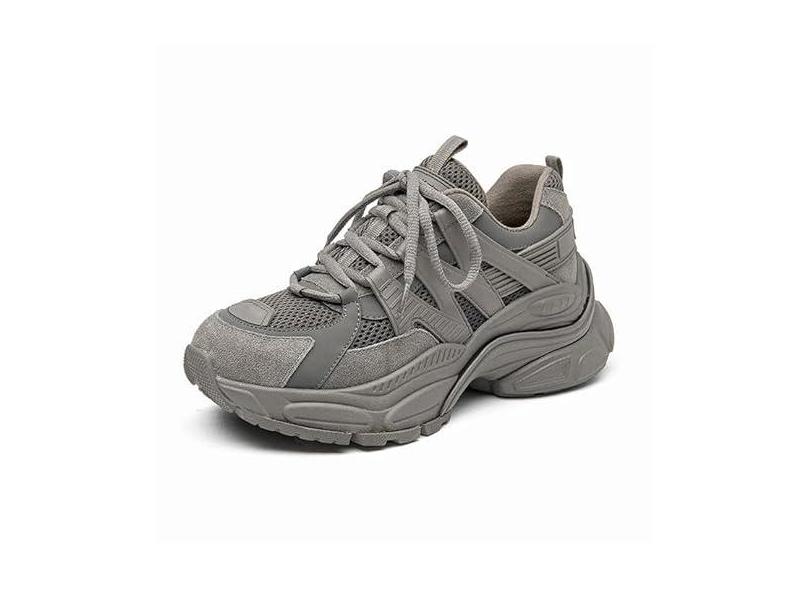 BEAU TODAY Tênis feminino com plataforma grossa, de couro de camurça, grosso, confortável, moderno, casual, antiderrapante, cadarço, caminhada, corrida, tênis, Cinza, 34