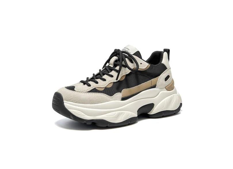 BEAU TODAY Tênis feminino grosso, grosso, cadarço confortável, moderno, Preto e cinza, 36