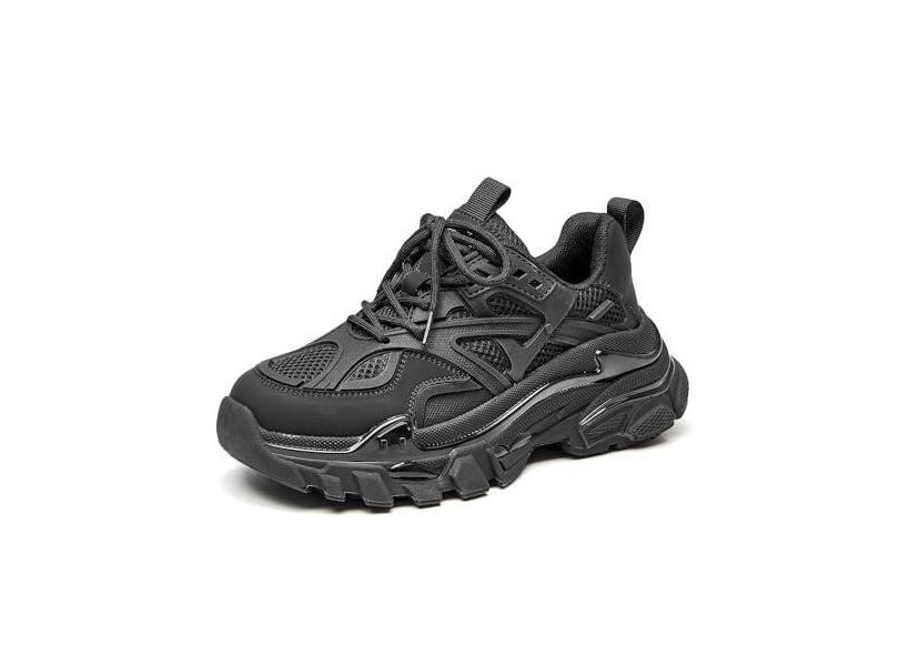 BEAU TODAY Tênis feminino grosso, moderno, plataforma, sapatos femininos, casuais de caminhada com cadarço, Preto, 35