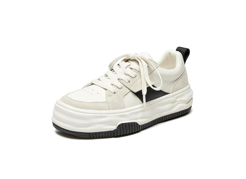 BEAU TODAY Tênis feminino moderno com cadarço confortável, fofo, casual, de couro, Preto, 35