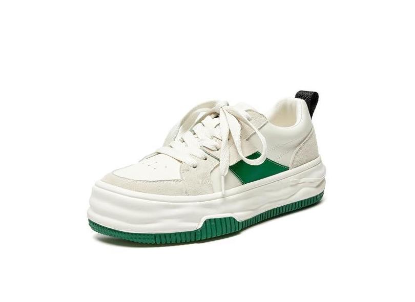 BEAU TODAY Tênis feminino moderno com cadarço confortável, fofo, casual, de couro, Verde, 35