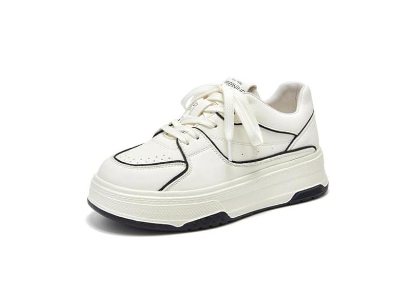BEAU TODAY Tênis feminino moderno, tênis de plataforma grossa para mulheres, sapatos de caminhada antiderrapantes casuais com cadarço, tênis de corrida confortável para mulheres, Bege-preto, 35