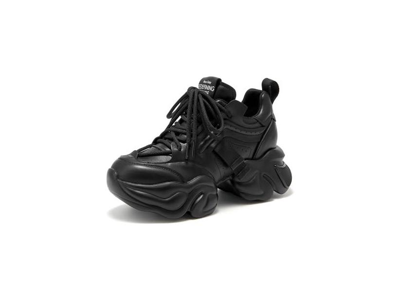 BEAU TODAY Tênis grosso feminino, tênis fashion feminino, de couro, confortável, casual, com cadarço, plataforma grossa, Preto, 36