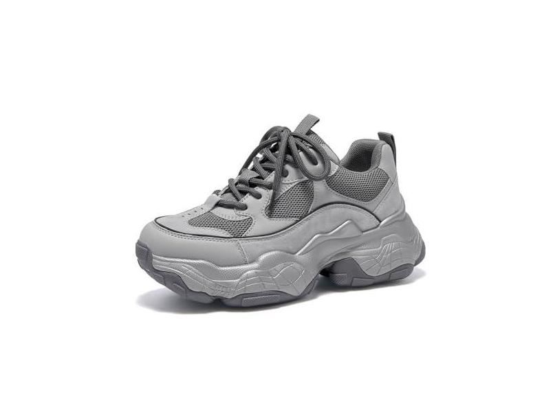 BEAU TODAY Tênis grosso para mulheres, tênis fashion feminino, plataforma com cadarço, confortável, couro casual, Cinza escuro, 34