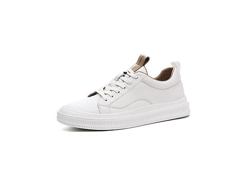 bestgift Sapatos masculinos Solas grossas Sapatilhas esportivas de competição masculina Sapatilhas brancas casuais de couro Branco 40.5