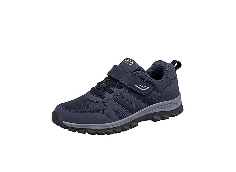 Bota masculina simples e moderna com cabeça redonda de tecido voador, cor lisa, leve, respirável, macia, casual, esportivo, tênis (azul escuro, 38)