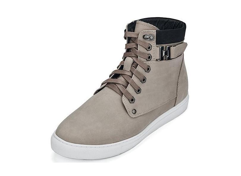 CALTO Tênis masculino invisível que aumenta a altura - Tênis moderno de couro nobuck com cadarço - 6 cm mais alto, Cinzento-acastan, 38