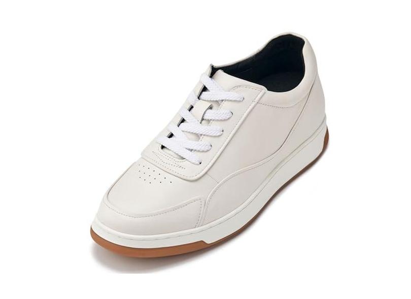 CALTO Tênis masculino invisível que aumenta a altura – Tênis moderno de couro premium com cadarço – 6 cm mais alto, Off-white, 37