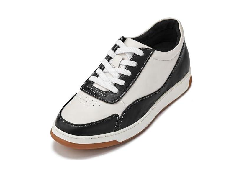CALTO Tênis masculino invisível que aumenta a altura – Tênis moderno de couro premium com cadarço – 6 cm mais alto, Preto/Branco/Branco e Sola de Goma, 38
