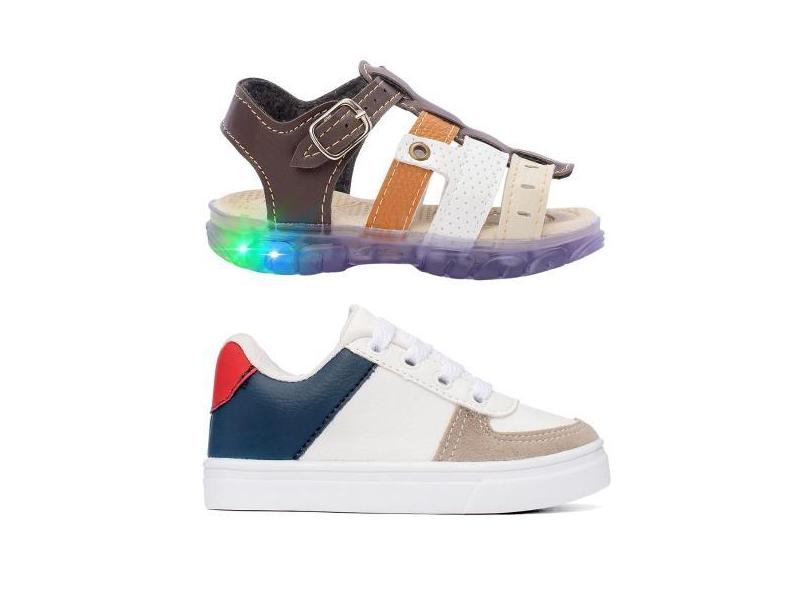 Combo Infantil Tenis Casual + Sandalia LED Menino Funfy 2311A, Cinza,