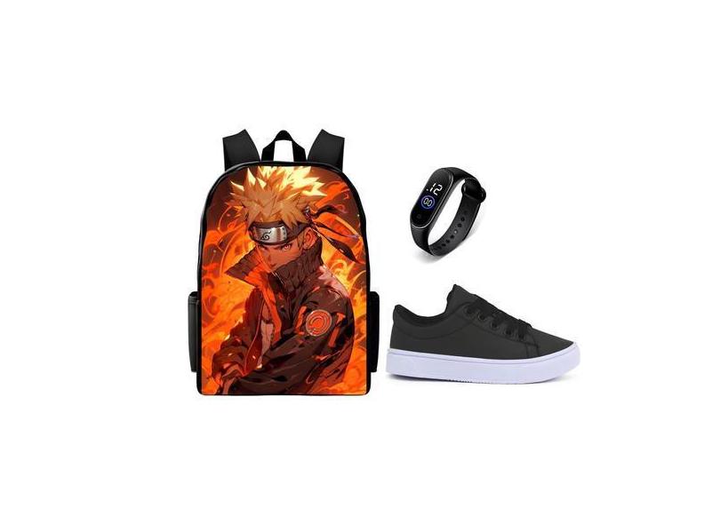 Conjunto Escolar Masculino Tenis Casual Mais Relogio Digital E Mochila