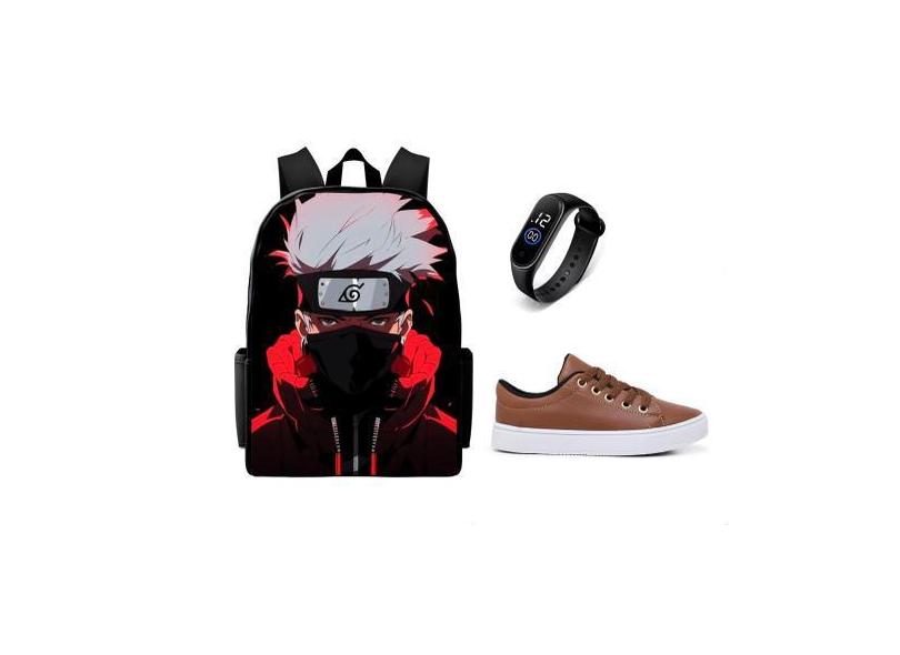 Conjunto Escolar Mochila Mais Tenis Casual E Relogio Digital Lançament
