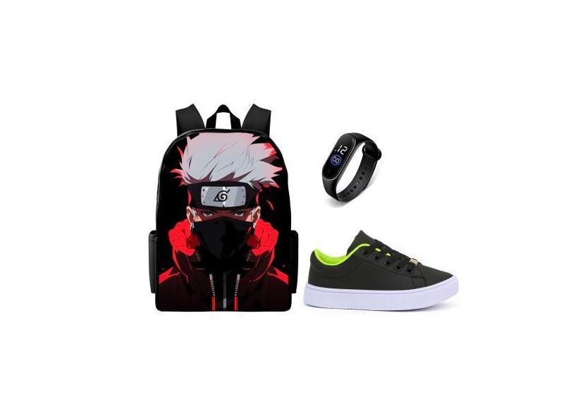 Conjunto Escolar Tenis Casual Mais relogio E Mochila Infantil Versatil