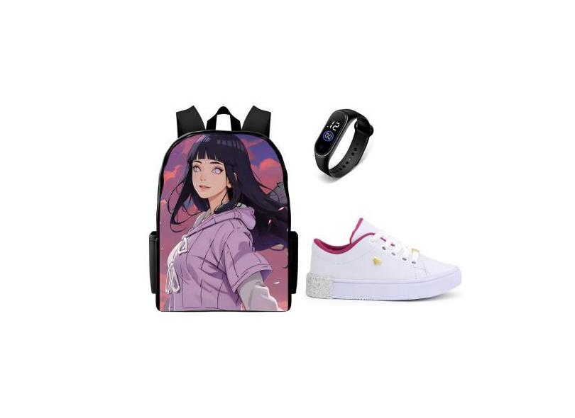 Conjunto Feminino Mochila Escolar Mais Tenis Casual Infantil E Relogio