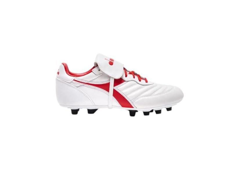 Diadora Brasil OG LT T MDPU Tênis masculino de futebol firme, couro de flor integral ultramacio, resistente à água, sola firme, palmilha removível, Branco/vermelho Milano, 39