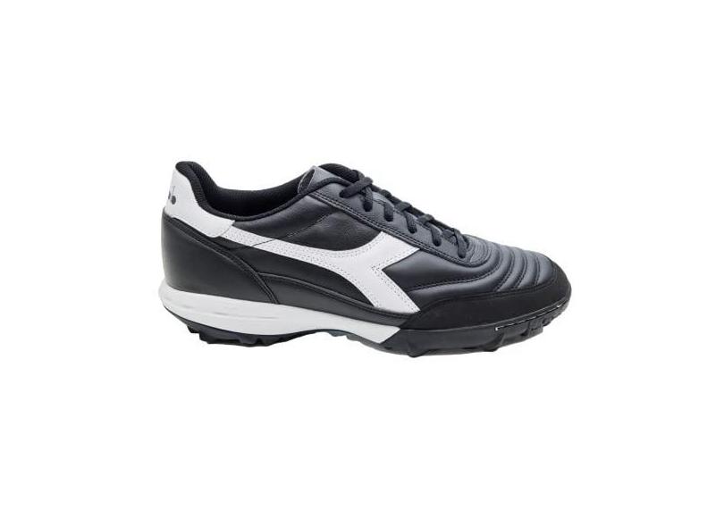 Diadora Calcetto LT Turf Tênis de futebol – couro de flor integral, amortecimento aprimorado, borracha antidesgaste, grama sintética, tração e estabilidade ideais, Preto/branco, 38