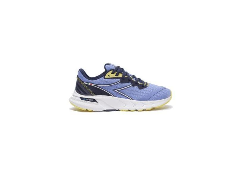 Diadora Tênis de corrida feminino Mythos Blushield Hip 5 Knit, Pervinca profunda/amarelo neon, 40