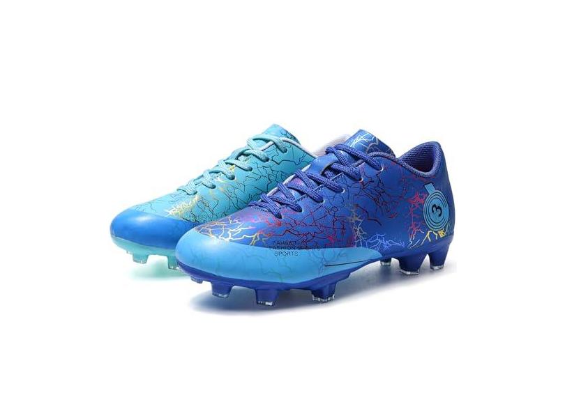 DimaiGlobal Chuteira de futebol infantil para meninos e meninas, chuteiras de futebol para treinamento ao ar livre, tênis esportivo profissional, juvenil, grama, tênis unissex, Azul/turquesa, 16