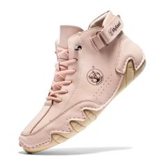 FLYLAND Tênis feminino casual de couro, feito à mão, chukka, chukka, leve, sem cadarço, tênis para caminhada e direção, rosa, 38