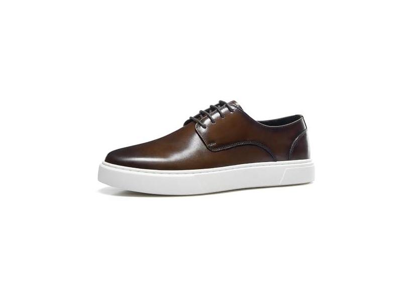 GIFENNSE Tênis masculino casual de couro, Marrom escuro, 42