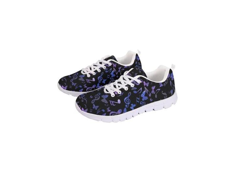 GOSTONG Tênis de corrida feminino, de malha respirável, antiderrapante, atlético, academia, treinamento, uso ao ar livre, branco, 34-46, Nota musical com estampa, 34