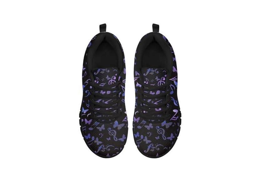 GOSTONG Tênis de corrida feminino, de malha respirável, sola de borracha, antiderrapante, cadarço para uso ao ar livre, preto, 34-46, Nota musical com estampa, 41