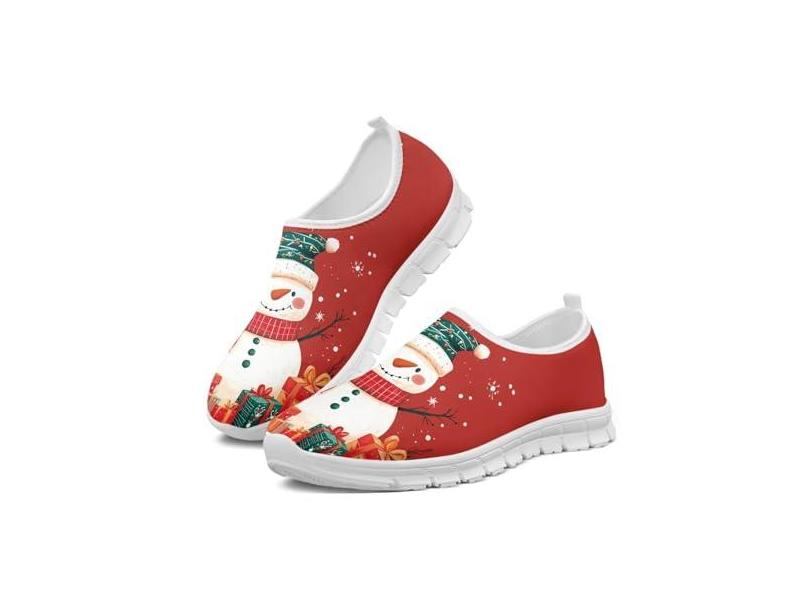 GOSTONG Tênis masculino retrô de corte baixo, mocassins, respirável, de malha elástica, secagem rápida, branco, 34-48, Boneco de neve, 36