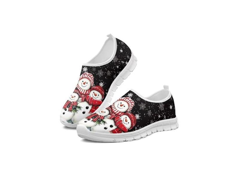 GOSTONG Tênis masculino retrô de corte baixo, mocassins, respirável, de malha elástica, secagem rápida, branco, 34-48, Família de bonecos de neve, 36