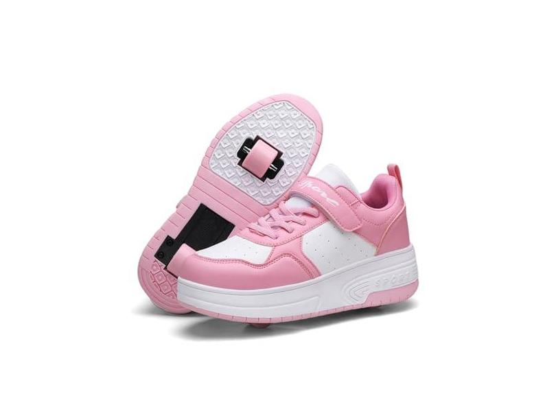 HOVERKICKES Tênis de skate LED para crianças, meninos, meninas, com rodas destacáveis, recarregáveis, piscantes, Rosa-mst, 16