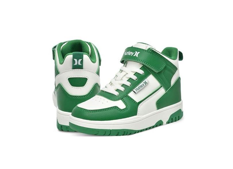 Hurley Tênis infantil Carson de cano alto com alça ajustável, tênis de cano alto para crianças, tênis de cano alto acolchoado resistente para meninos e meninas, tênis de basquete moderno para