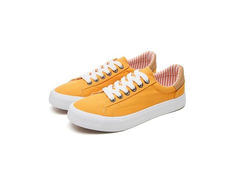 Iarus Tênis feminino moderno de lona branco de cano baixo, confortável, respirável, com cadarço, Amarelo, 38