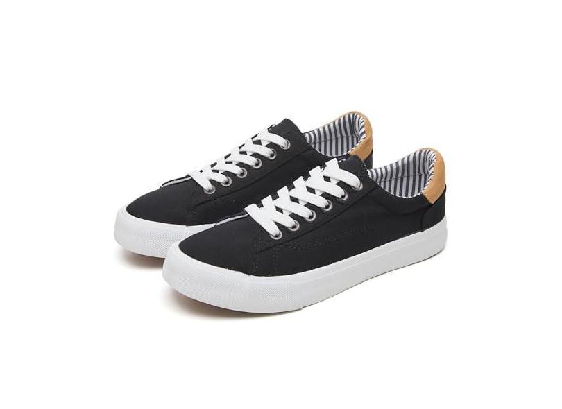 Iarus Tênis feminino moderno de lona branco de cano baixo, confortável, respirável, com cadarço, Preto, 35