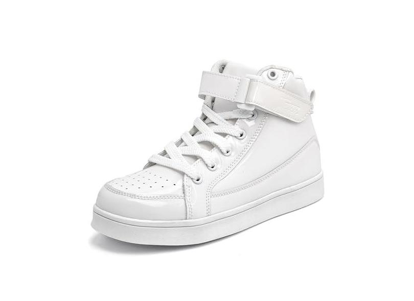 IGxx Sapatos de lantejoulas para crianças, meninos, modernos, brilhantes, dourados, brilhantes, tênis de cano alto para meninas com gancho e laço, Branco, 18