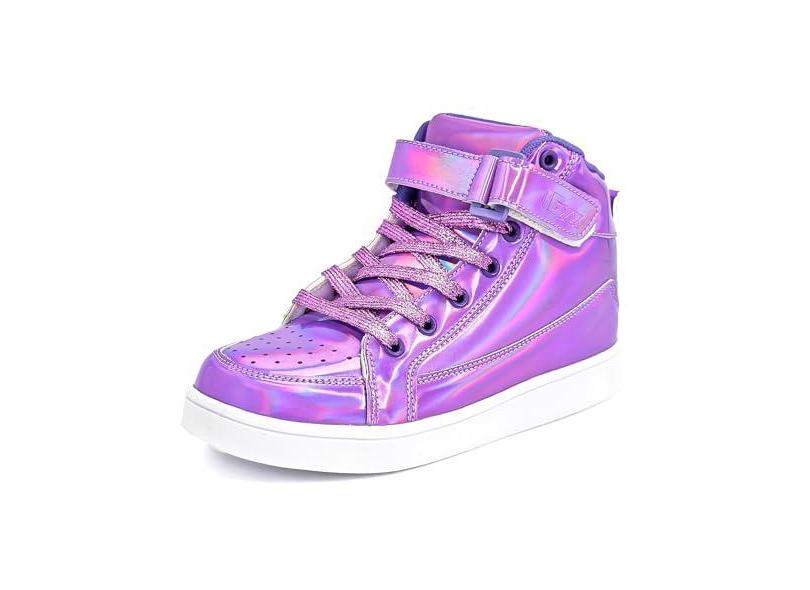IGxx Sapatos de lantejoulas para crianças, meninos, modernos, brilhantes, dourados, brilhantes, tênis de cano alto para meninas com gancho e laço, Roxa, 18